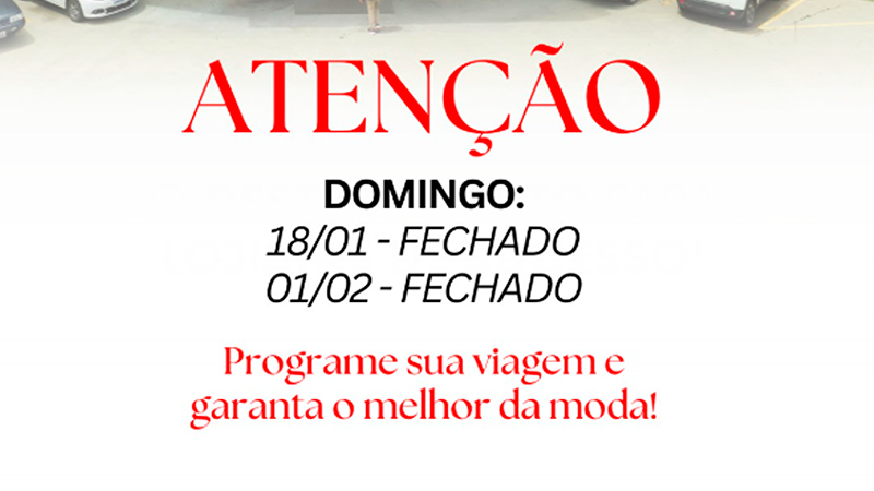 Informamos que o Shopping Atacado Prime estará FECHADO nos seguintes domingos: